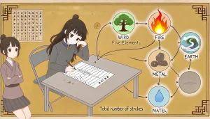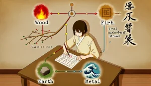 • 名前の各文字の画数を五行に当てはめて運勢を読み解く